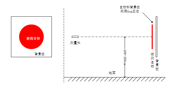 Replace the target board, place the target and background board on the centerline of the placement area, and display the distance, shape, and size (side length). The measurement time must not exceed 2 minutes.
